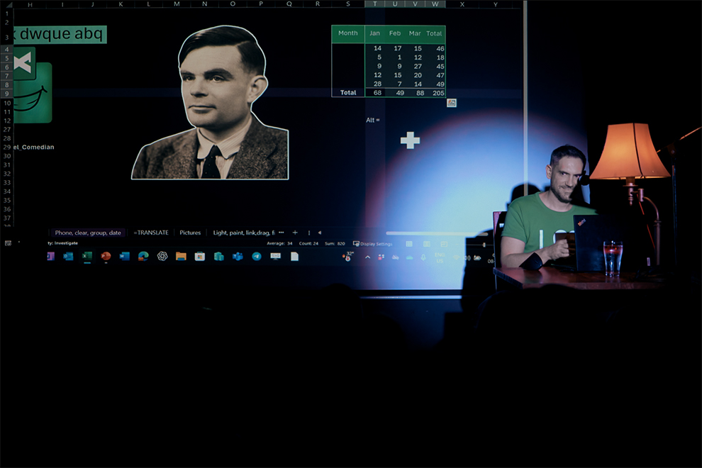 With a Microsoft Excel theme, the audience was unsure how he was going to hold their attention for a full hour, but rest assured, “Excel Comedy and Mathem-antics” ticks every box, err .. fills every column and row.