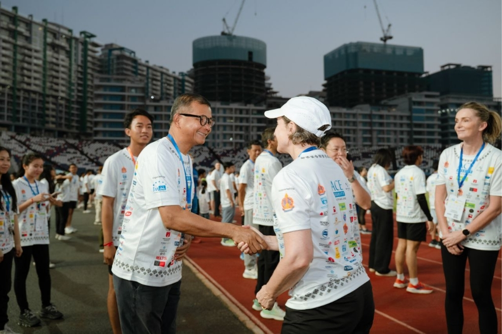 Distinguished guests joining the walk included HE Dr Kem Sethany, MOEYS Secretary of State, HE Christian DesRoches, Ambassador of Canada to Cambodia and Madam, Ms Bridget Collier, Chargé d’Affaires of the Australian Embassy in Cambodia, Ms Tennealle O’Shannessy, Chief Executive Officer of IDP Education, Mr Raja Sood, IDP Regional Director, and Mr Sreng Mao, Country Director of IDP Education and the Australian Centre for Education (ACE), Mr Ashley Irving, ACE Principal and President of Australian Chamber of Commerce, Mr Martin Darby, Executive Director of British Chamber of Commerce.