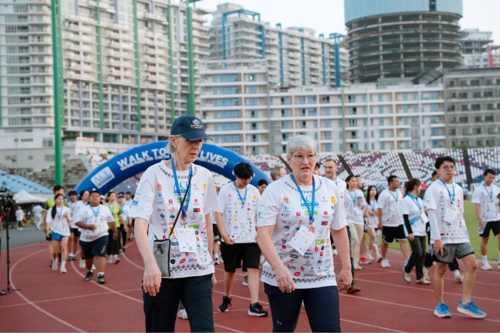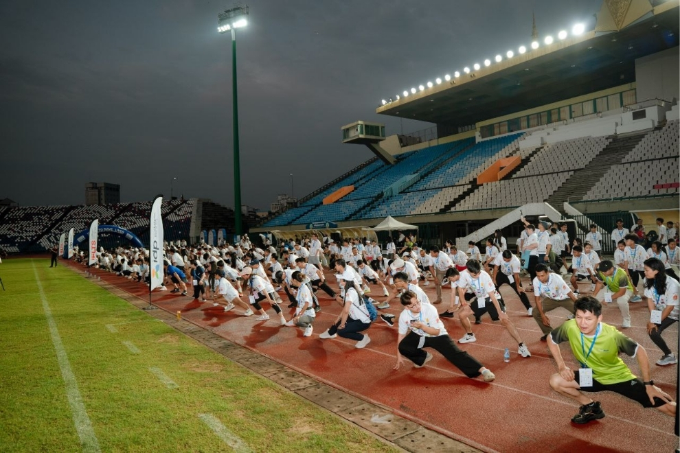 The morning began with an energising warm-up session led by coaches from the SUSU Running Team, followed by the National Anthem of Cambodia and opening remarks, before participants set off on the 5-kilometre walk under the shared theme of “Walk to Save Lives.”