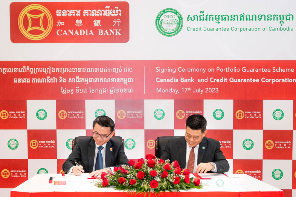 Canadia Bank Plc has joined the state-owned Credit Guarantee Corporation of Cambodia Plc’s (CGCC) Portfolio Guarantee Scheme (PGS) to offer guaranteed loans to local micro-, small- and medium-sized enterprises (MSME).