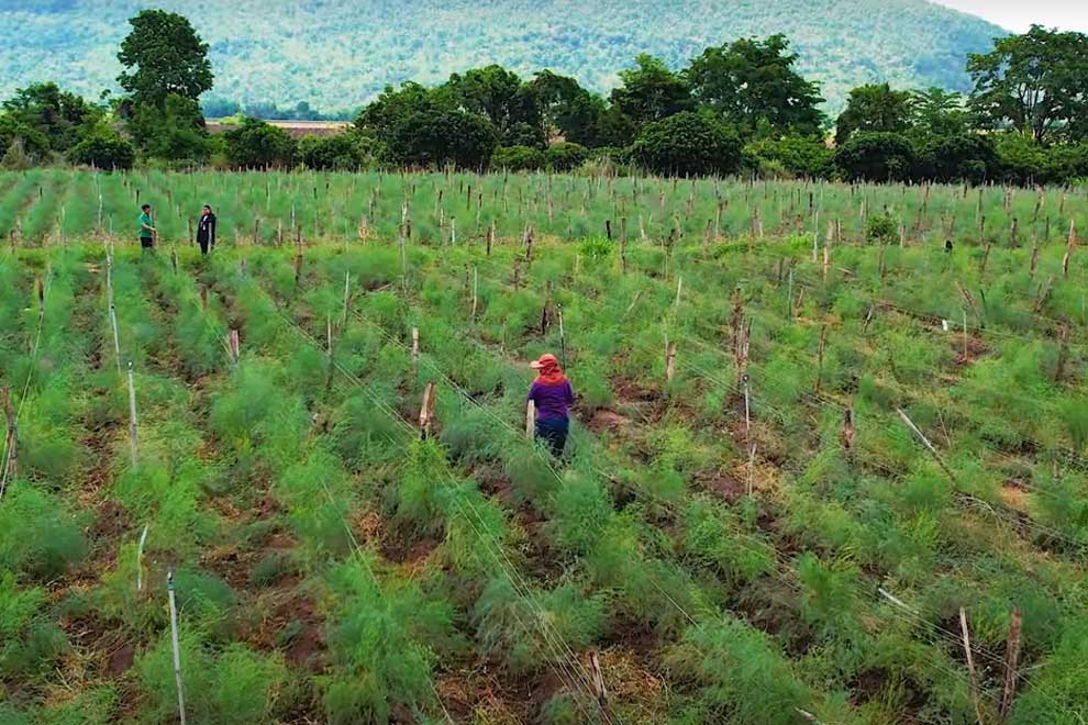 Citing Thai agricultural documents, he notes that asparagus is a health food, packed with almost 20 types of vitamins per 100 grammes.