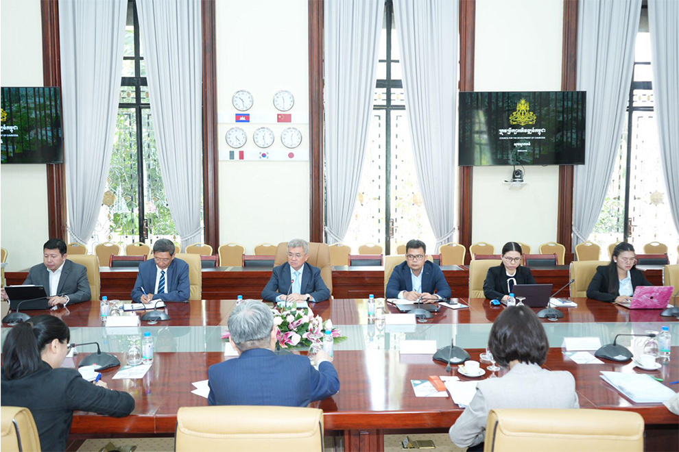 Jin Sangjin, deputy director of the Foreign Affairs Department of Jiangsu province, China, met with Chea Vuthy, secretary-general of the Cambodia Investment Board, at the Council for the Development of Cambodia (CDC) headquarters on March 24.