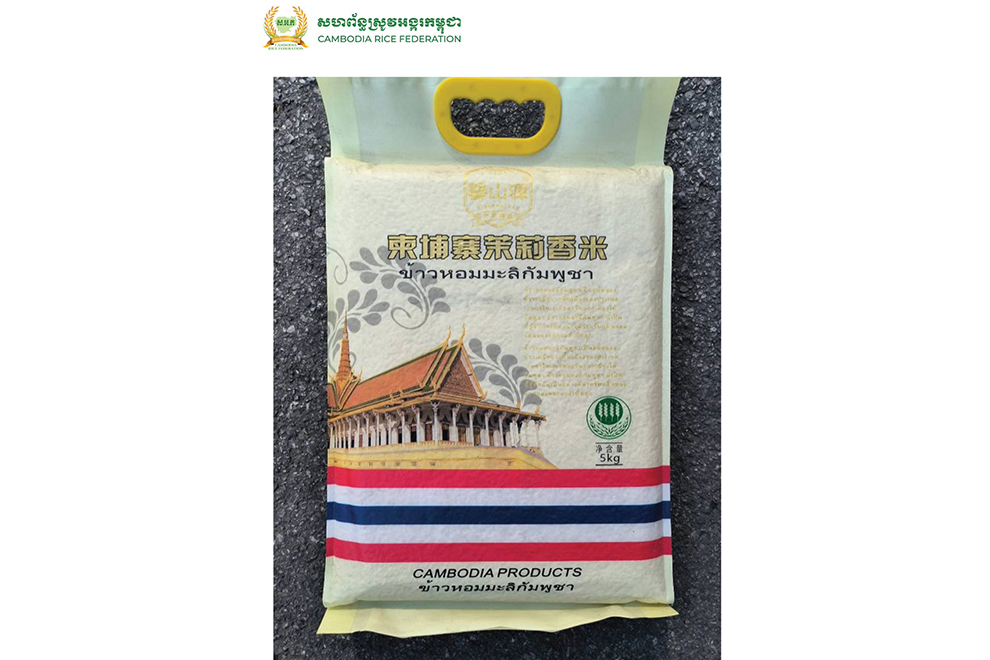 The Cambodia Rice Federation (CRF) has denied any connection to Thai-branded rice which is currently being marketed online in China. The five-kilogramme packages are labelled in Thai and marked with a design resembling the Thai national flag, while being marketed as a a Cambodian product.
