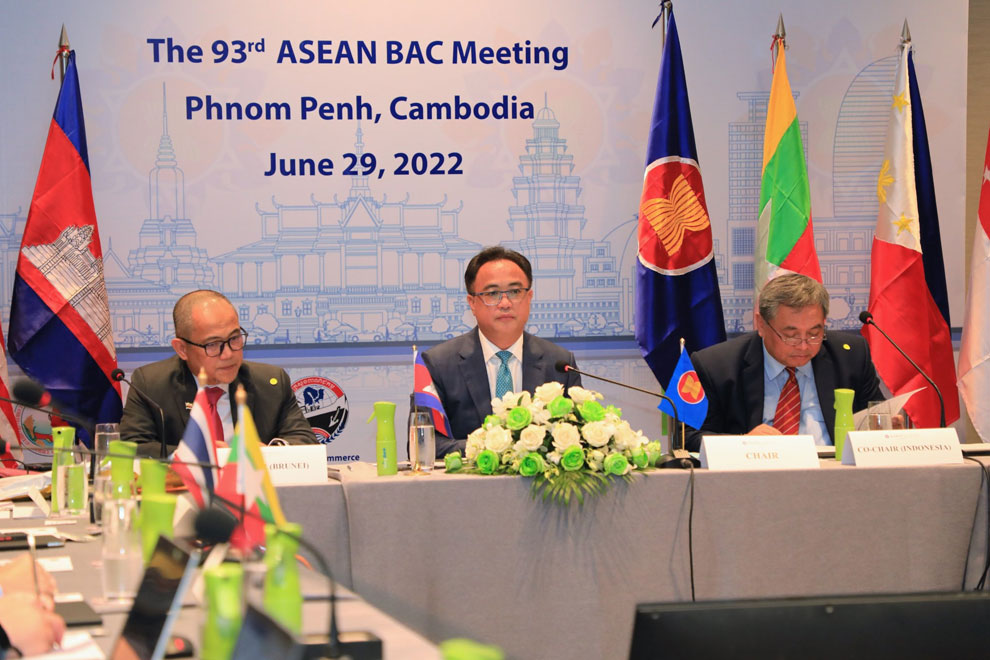 June 29’s conference, the 93rd ASEAN Business Advisory Council (ASEAN BAC) Meeting, organised in collaboration with the Cambodia Chamber of Commerce (CCC), discussed preparations for ABIS 2022 and ASEAN Business Awards (ABA) 2022.