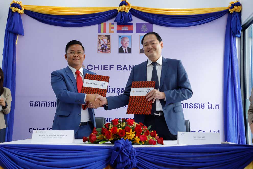 A memorandum of understanding (MoU) was signed to this end on March 26, between Chief Bank CEO Soeung Morarith and Zillennium group chairman Kuy Vat.