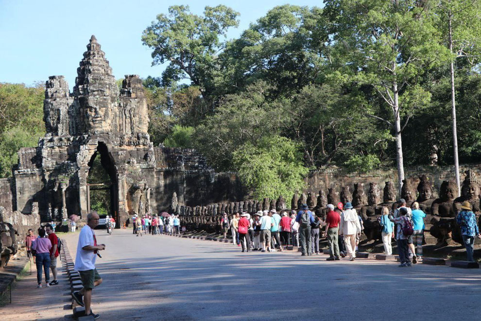 “There are 15 or 16 flights arriving per day, bringing in around 1,300 or 1,400 international tourists every day. An additional 600-700 international tourists also arrive daily in the province via land borders,” said Ngov Seng Kak, director of the Siem Reap provincial department of tourism.
