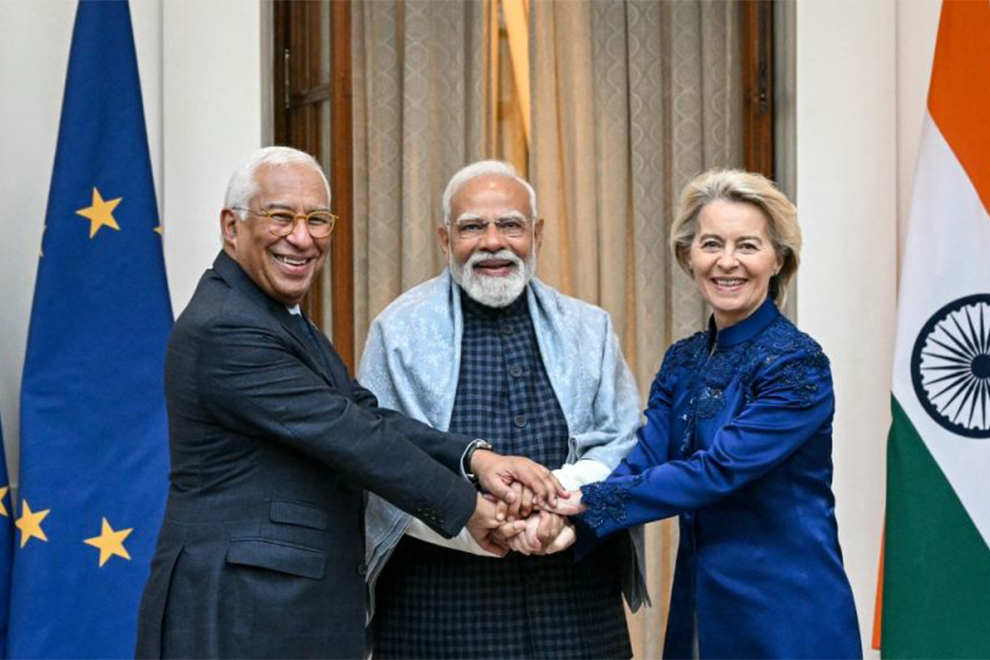 During a joint press briefing, PM Modi and the EU leaders witnessed the signing and exchange of the political declaration of the conclusion of negotiations of the India-EU Free Trade Agreement.