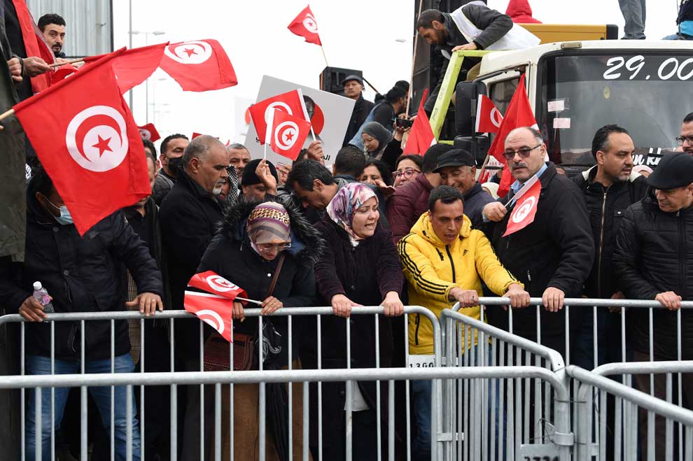 More than 2,000 Tunisians rallied on March 20, the country’s independence day, against President Kais Saied and a project he launched to gauge public opinion on proposed constitutional reforms.