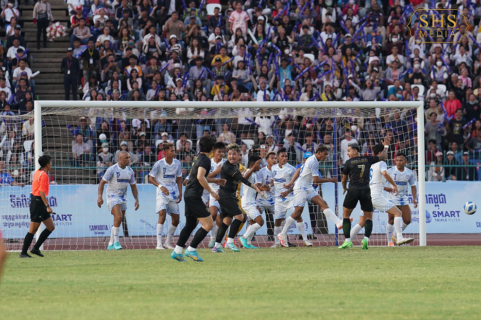 The Cambodia football Super Stars, made up of some of the Kingdom’s biggest celebrities from the world of entertainment, defeated a team of famous Kun Khmer boxers 2-0.