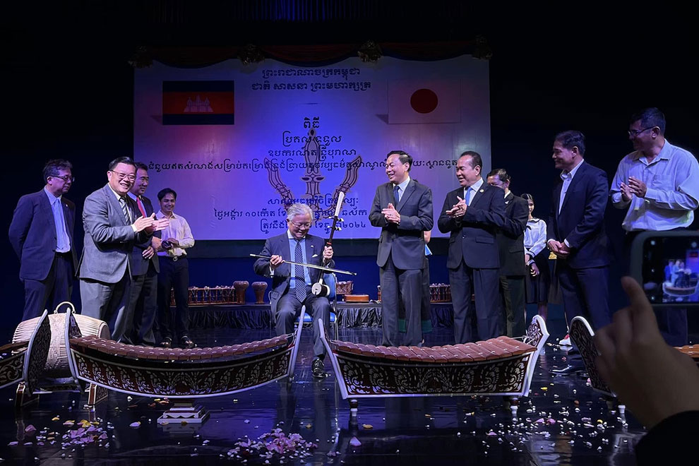The Japanese embassy in Cambodia donated several traditional Khmer musical instruments to the Secondary School of Fine Arts on December 10, as part of the KUSANONE Grassroots Grant Aid Programme.