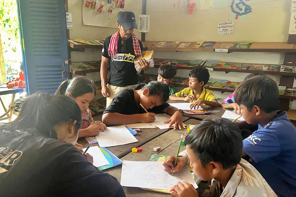 In a quiet corner of Bak Prea village, nestled within the remote reaches of Cambodia’s Ek Phnom district in Battambang province, a young student leans intently over her sketchpad. Her pencil glides with purpose, translating the world around her into lines and shapes on paper.