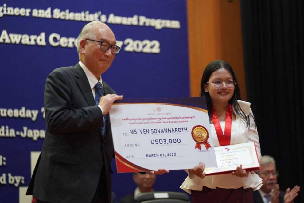Sovannaroth was awarded a gold medal in the Honda Foundation Competition for Young Engineers and Scientists (Y-E-S) this year, placing in the top four of 30 contestants.