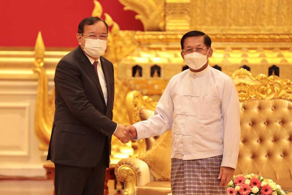 In a press statement released late on March 21 regarding the meeting between Sokhonn and Min Aung Hlaing, the ministry said: “Both sides exchanged views on the progress of the implementation of the ASEAN Five-Point Consensus, following the visit of Prime Minister Hun Sen in early January this year.”