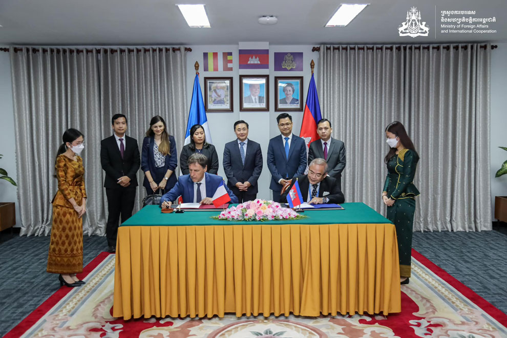 The signing ceremony was held on January 23 in the presence of Chem Widhya, secretary of state for the Ministry of Foreign Affairs and International Cooperation, and French ambassador Jacques Pellet.
