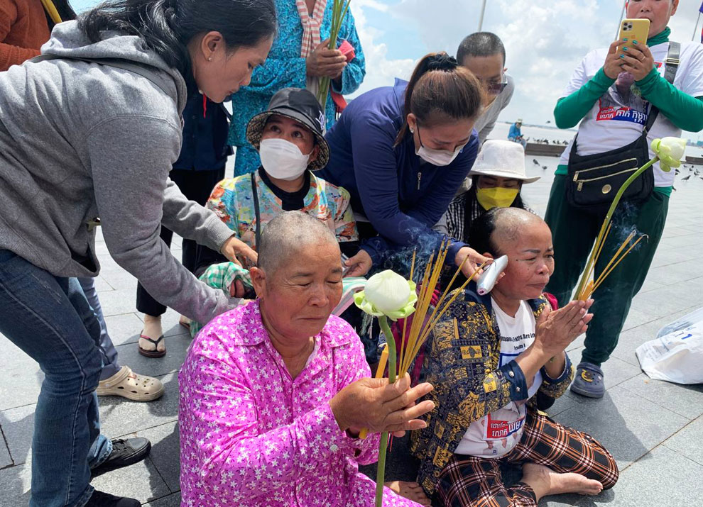 Two “Friday Women” – the wives of former opposition activists detained at Trapaing Phlong prison in Tbong Khmum province – shaved their head immediately after the Phnom Penh Court of Appeal upheld the municipal court’s decision ordering their spouses and 13 other activists to serve the remainder of their 44-month jail terms.