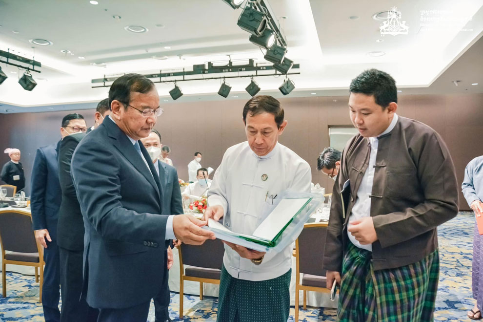 “The SAC’s main condition is that the opposition groups have to change their mindsets, and that consists of three elements. First, they can’t continue to attempt to destroy the government if they are going to join it. Second, they aren’t going to be replacing the government. And third is that the 2008 constitution must be the basis for peace talks,” Sokhonn said, adding that these conditions were set by SAC chairman Senior General Min Aung Hlaing, whom he met for over two hours on this trip.