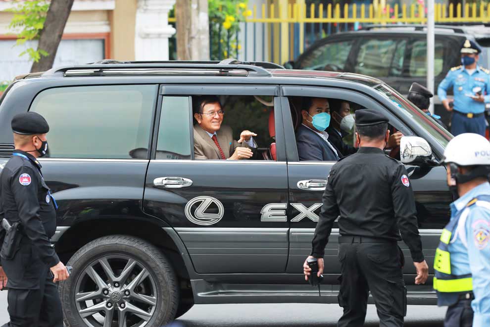Sokha, former leader of the Supreme Court-dissolved Cambodia National Rescue Party (CNRP), is charged with conspiring with foreign powers to overthrow the elected government.