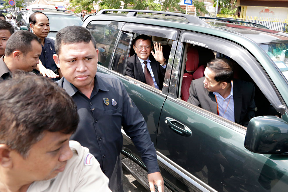 Chan Chen, one of Sokha’s defence lawyers, told reporters in front of the court building that the prosecutor had played videos showing demonstrations held at Freedom Park. In one video, Sokha said that, having met with the people, he would go to meet with a superpower.