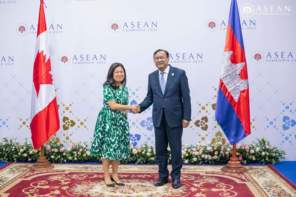 Sokhonn met with Mary Ng, Minister of International Trade, Export Promotion, Small Business and Economic Development of Canada, on August 5 on the sidelines of the 55th ASEAN Foreign Ministers’ Meeting and related meetings, hosted this year by Cambodia.