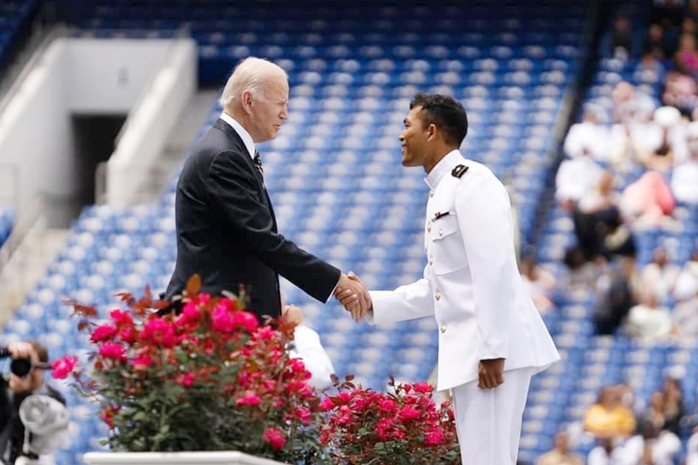 A former cowherd from Kampong Chhnang province attracted public attention recently when he posted several pictures of himself with US President Joe Biden and his grandmother at his recent graduation ceremony from the US Naval Academy at Annapolis, Maryland – in part due to the cow leash and krama his grandmother had given him as a symbolic graduation gift.