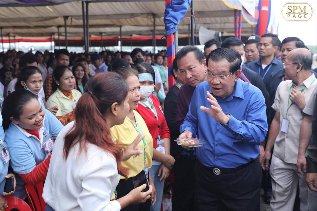 Hun Sen was addressing nearly 20,000 workers at the Royal Group Phnom Penh Special Economic Zone on May 27.
