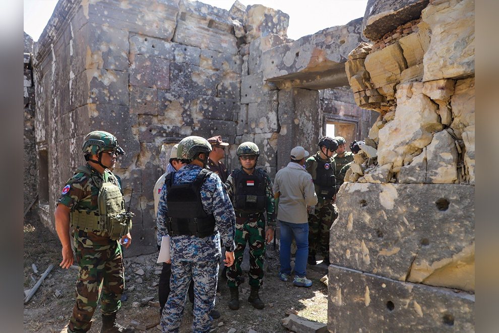 Today, January 13, the ASEAN Observer Team (AOT) conducted an inspection tour of the situation in local villages in Sra-em commune, Choam Ksant district, Preah Vihear province. They also visited the UNESCO-listed Preah Vihear Temple, which was damaged by Thai attacks during the recent fighting.