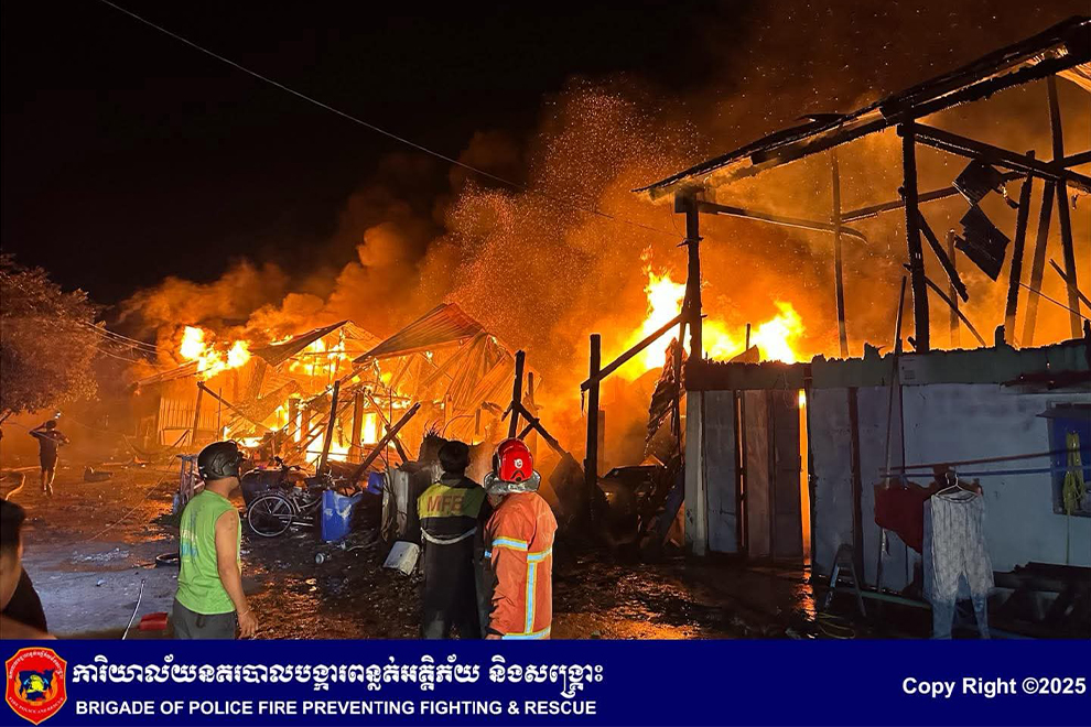 According to the Phnom Penh Municipal Police Fire and Rescue Office, the blaze started when children arguing with each other set their own house on fire, which then spread to 10 neighbouring homes.