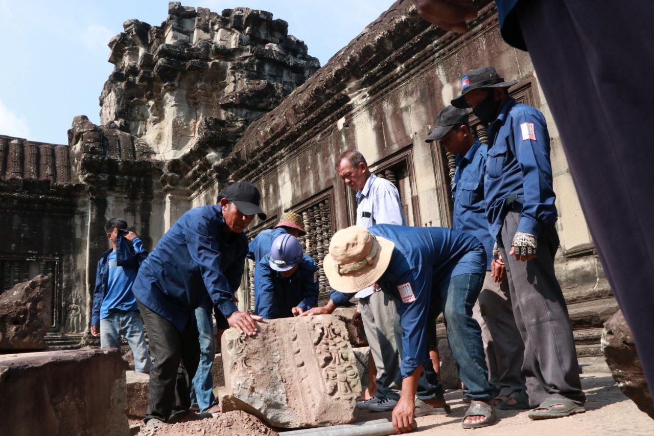 ANA deputy director-general Kim Sothin said the temple’s highest spire, or “Bakan Tower”, was surrounded by walls of galleries, making it impossible to bring heavy machinery to aid in the work, which he confirmed had taken more than 10 months through “perseverance and patience”, according to ANA’s April 29 statement.