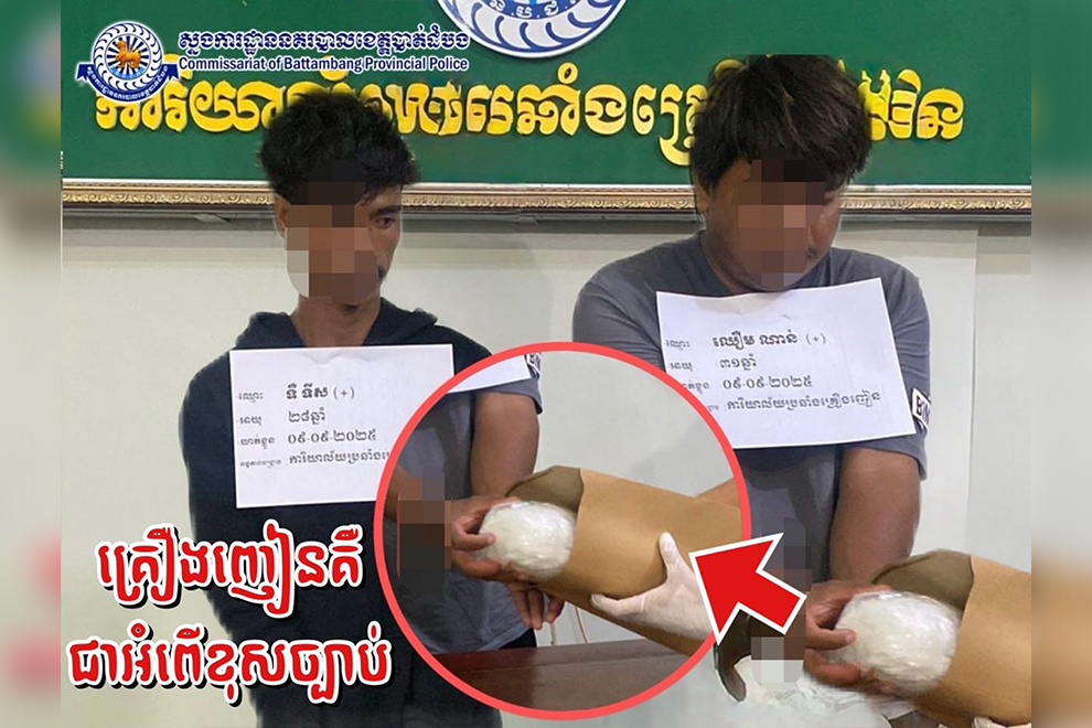 Police arrested three suspects, including one woman, and seized 1,061.04 grammes of methamphetamine (ice). The two men were identified as Teu Tis, 28, and Chhoeum Nan, 31.