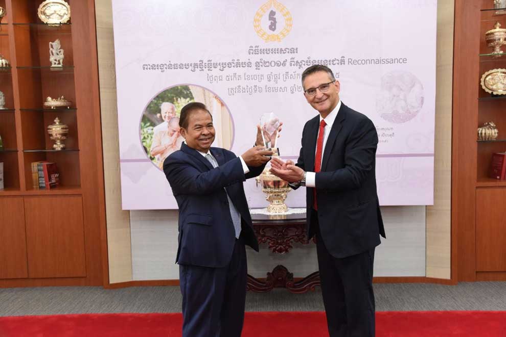 Antonio Cesario Ricdo, deputy director of the Switzerland-based manufacturer of high security paper, presented the award to the NBC in Phnom Penh on April 6, according to the central bank’s governor, Chea Chanto.