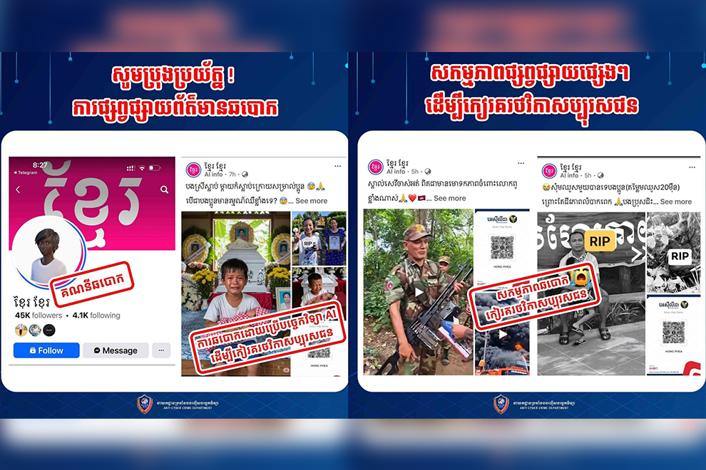 “A Facebook account named ‘Khmer Khmer’ has been spreading false information to solicit donations on social media, claiming a destitute wife is unable to afford a coffin for her deceased husband,” the department warned.