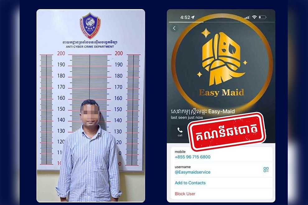Following complaints from more than 30 victims, involving some $20,000, the Anti-Cyber Crime Department, in collaboration with the Siem Reap Provincial Police, detained the owner of the Easy-Maid Facebook page.
