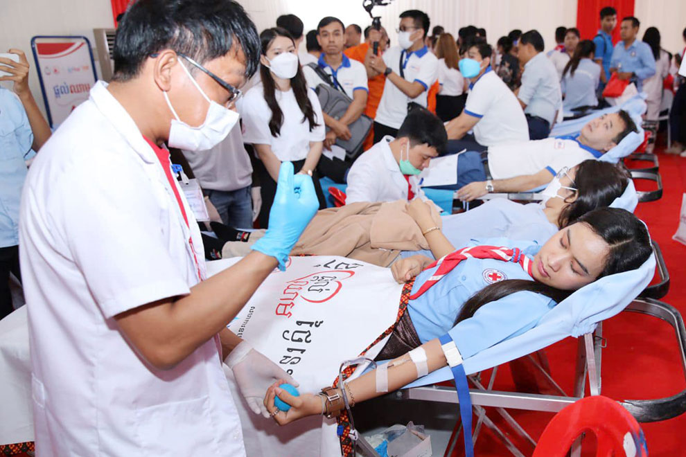 An event to mark the day, celebrated annually on June 14, was chaired by Minister of Health Mam Bun Heng, with NBTC president Sok Bo, and many other officials, students and members of the public in attendance.