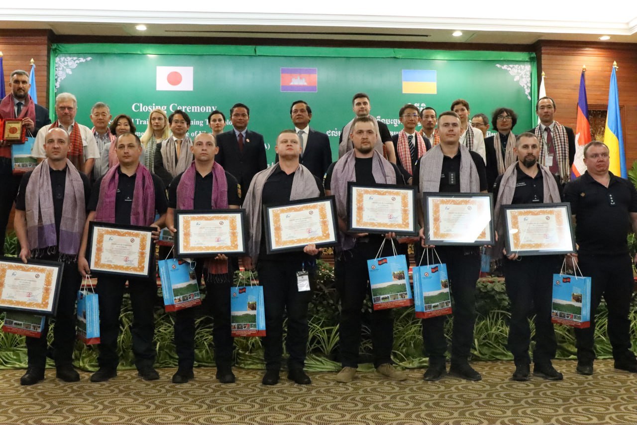 Hayashi made the remarks as the Cambodian Mine Action Centre (CMAC) held a January 20 closing ceremony for a weeklong mine clearance technology training course for Ukrainian officers. The training, which began on January 15, was conducted with the support of the Japan International Cooperation Agency (JICA).