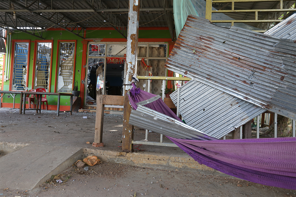 Homes near the Boeng Trakuon roundabout were damaged by Thai military fire during attacks between December 7-27, 2025, according to local authorities.