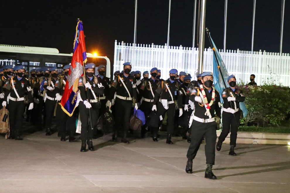Sem Sovanny, vice-chairman of the National Committee of UN Peacekeeping Operations and director-general of the National Centre for Peacekeeping Forces (NPMEC), addressed the 73 soldiers – 34 off them women – upon their return.