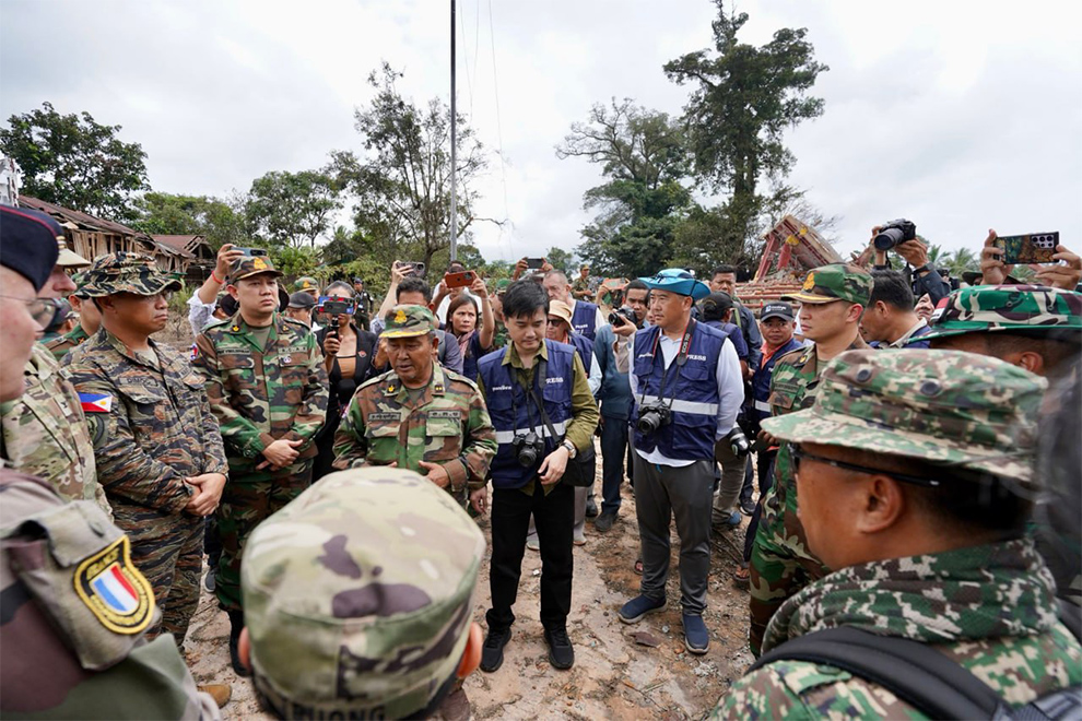 During the July 30 inspection tour of the An Ses Pass battlefield in Preah Vihear province, he showed them photographs taken by Cambodian forces of seven Thai soldiers who were on the Cambodian side of the lines demarcated by the ceasefire.