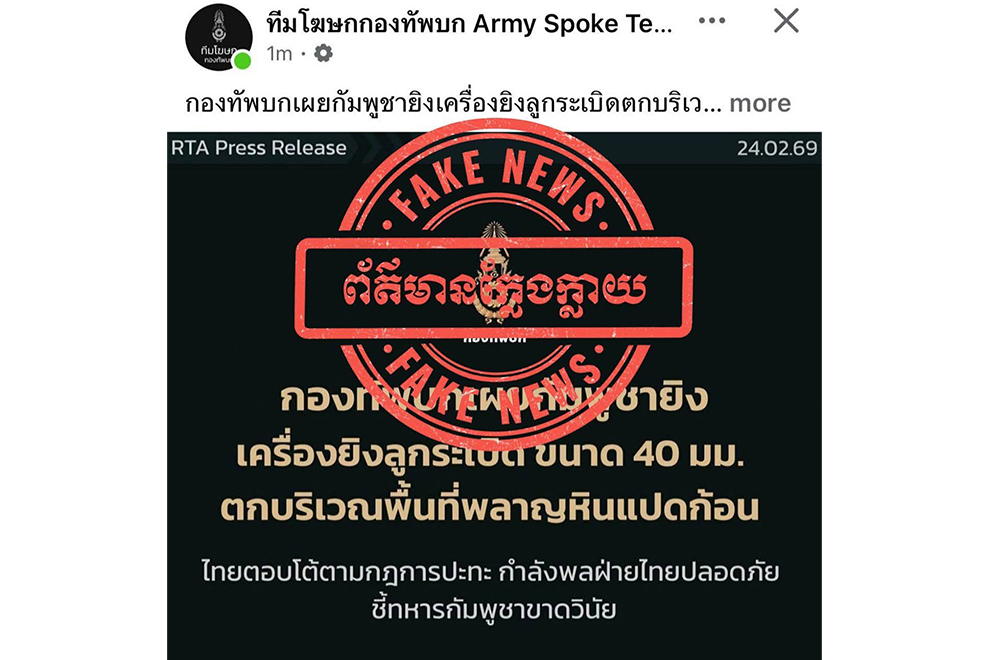 The Cambodian Ministry of National Defence has rejected reports published by Thai military social media accounts and several Thai media outlets claiming that Cambodian troops fired a single 40mm grenade near a Thai patrol.