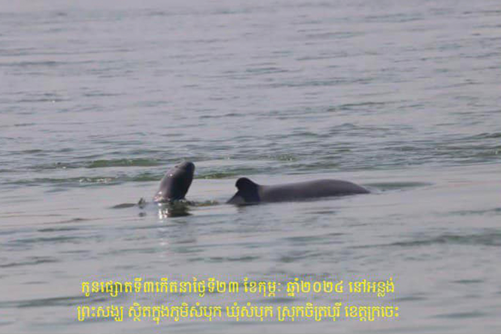 The third Mekong Irrawaddy Dolphin calf of the year was spotted near the Kampi deep pool dolphin protection area in Kratie province.