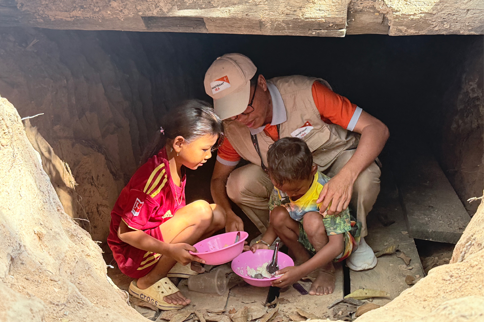 Kin Soksan, a World Vision field worker who is assisting displaced families, said the bunkers, built by local residents, have become essential psychological and physical protection for those who escaped shelling in border communities.