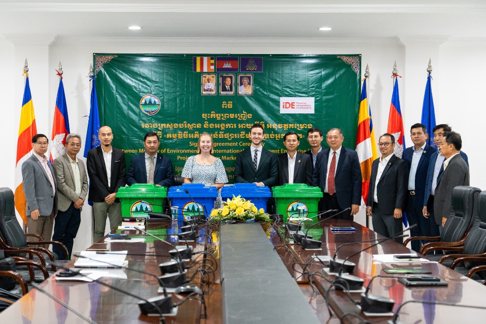 As part of continued efforts towards tackling environmental and public health challenges, iDE Cambodia and the Ministry of Environment have signed a new project agreement aimed at expanding solid waste management services across Cambodia’s rural communities.