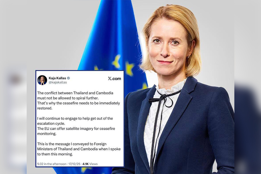 Kaja Kallas, representative of the EU for Foreign Affairs and Security Policy and vice-president of the European Commission, stated that the conflict between Thailand and Cambodia must not be allowed to spiral further, which is why a ceasefire needs to be immediately restored.
