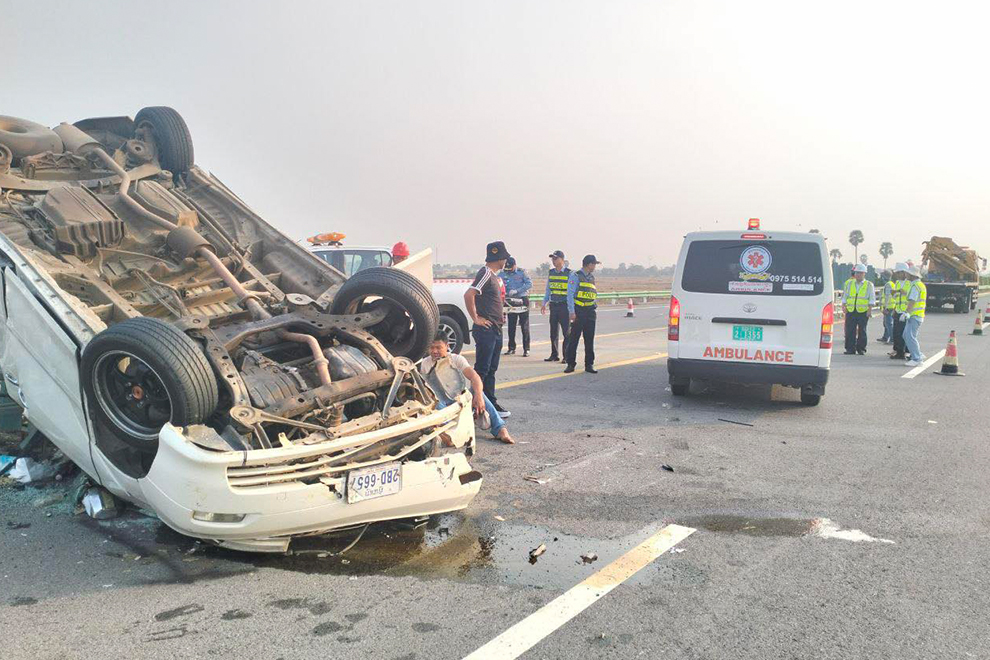 Five people were killed at the scene when a van overturned on the Phnom Penh-Sihanoukville Expressway this morning. Two others were rushed to hospital in serious condition.