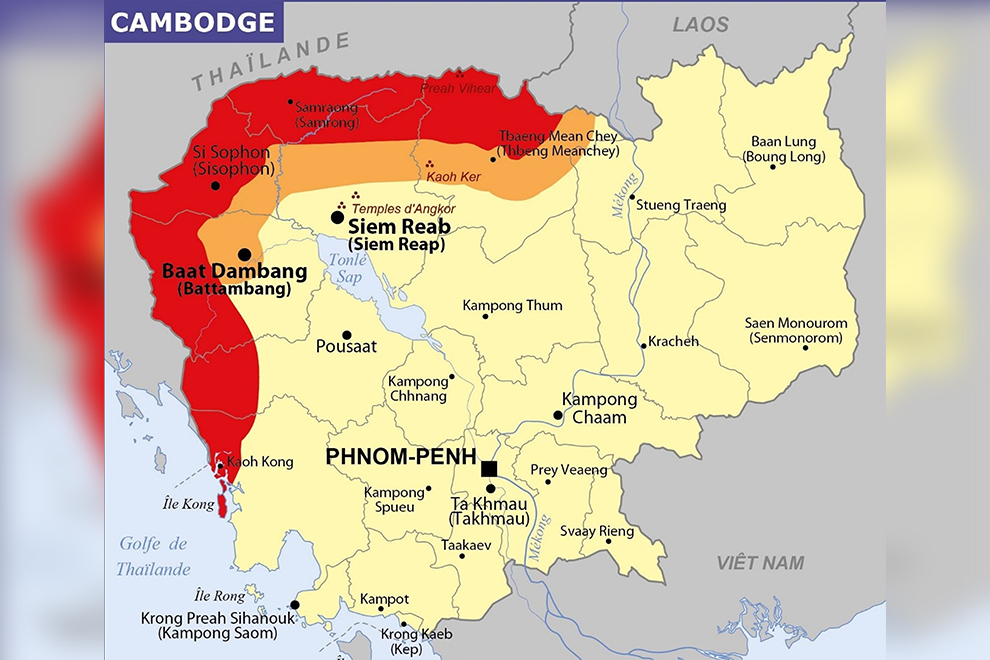 The French embassy in Cambodia has updated its travel advisory for Cambodia, adding a narrow “orange band” where travel should be limited, to the existing “red” warning against travel to all locations within 50 kilometres of the Thai border.