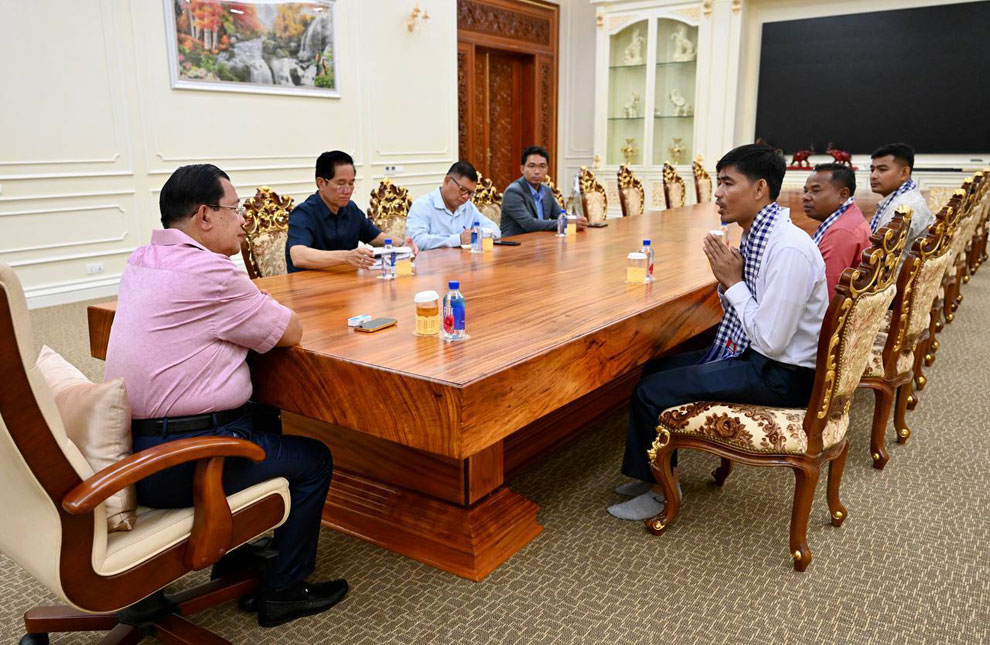 The prime minister granted the meeting to Savoeun and two of his two colleagues after they were bailed by the Ratanakkiri Provincial Court.