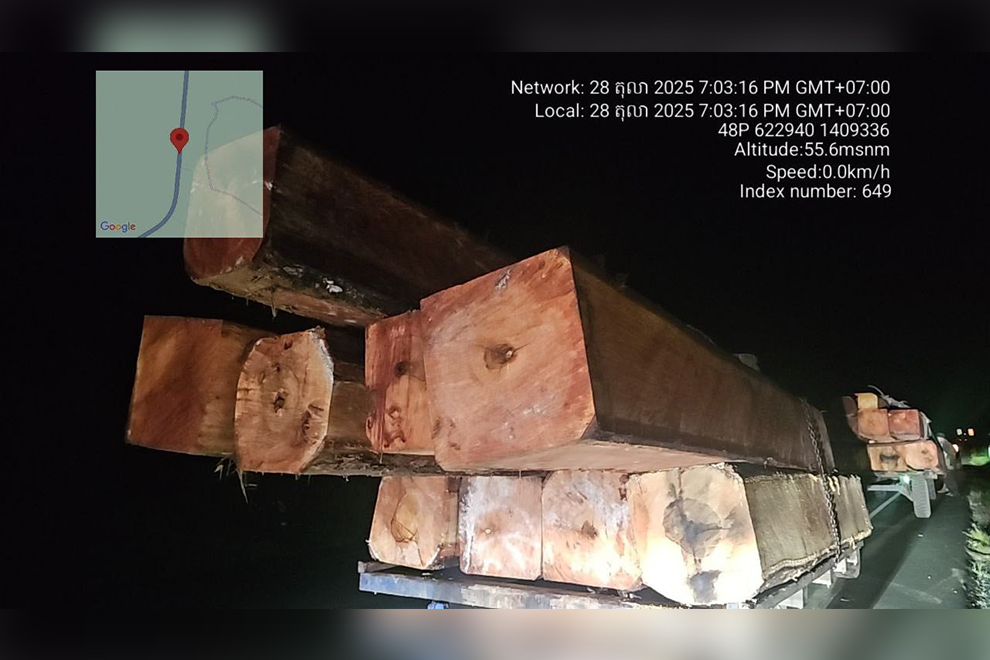 Var Thorn, governor of Kratie province, announced this afternoon, October 29, that authorities halted the illegal transportation of 13 large pieces of timber, equivalent to 8.725 cubic metres, “in a timely manner” after Nature Lovers Youth Association head Tan Kimsour reported on the matter. His comments were echoed by other social media users and influencers.
