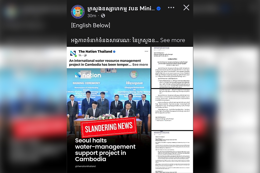 In a same-day statement, the ministry’s Public Relations Unit said it “strongly rejects” the article Seoul halts water-management support project in Cambodia published by The Nation on October 19.
