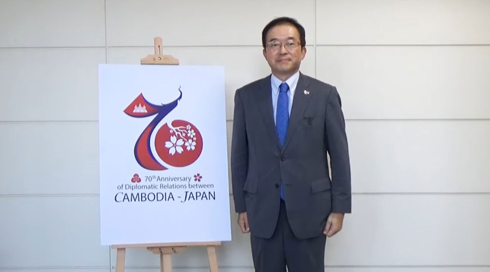 Japan’s ambassador to Cambodia, Masahiro Mikami, revealed the official logo commemorating the 70th Anniversary of the establishment of diplomatic relations between Japan and Cambodia next year and encouraged the use of the logo for the promotion of this diplomatic anniversary.