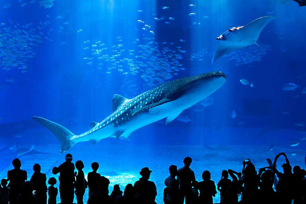 The aquarium is well-known for its Kuroshio Sea Tank. One of the largest tanks in the world, it allows visitors to observe whale sharks and other fish species.