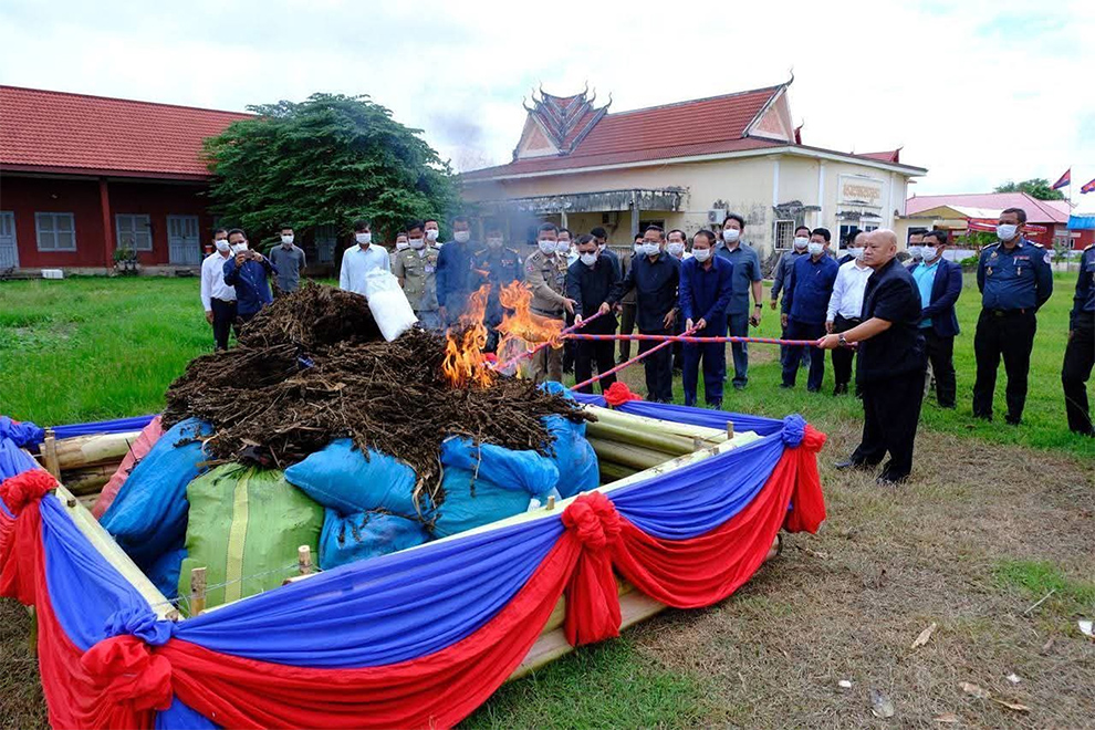 Almost 1,500 cannabis plants and over six kilogrammes of narcotics were destroyed in a ceremony held on Tuesday, August 26, in the compound of the Kratie Provincial Department of Culture and Fine Arts. The event was held to mark June 26, International Day Against Drug Abuse and Illicit Trafficking.